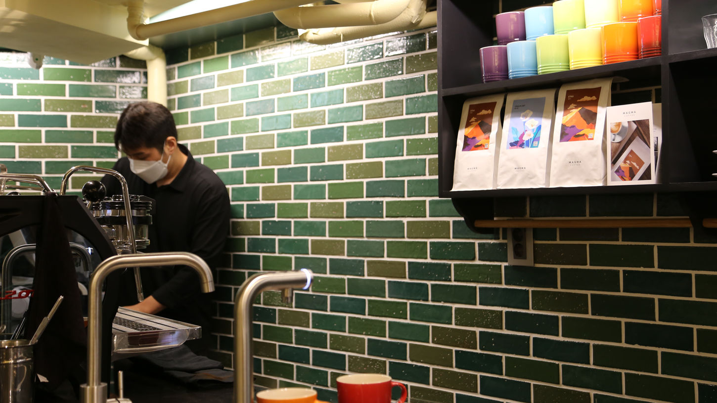 수입 핸드메이드 타일과 직접 제작된 벽돌을 사용 카페 인테리어로 이국적인 공간과 분위기를 연출 하였습니다. 강렬한 색감과 고급 소재의 바닥, 벽화, 그리고 가구에 전체적으로 구성되었습니다. 고급스러운 카페와 공예 공방의 느낌을 동시에 보여주면서 국내에서 쉽게 볼 수 없는 디테일로 마감된 공간입니다.
